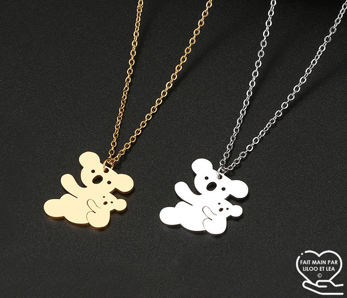 Koala and baby pendant necklace in silver or gold stainless steel.