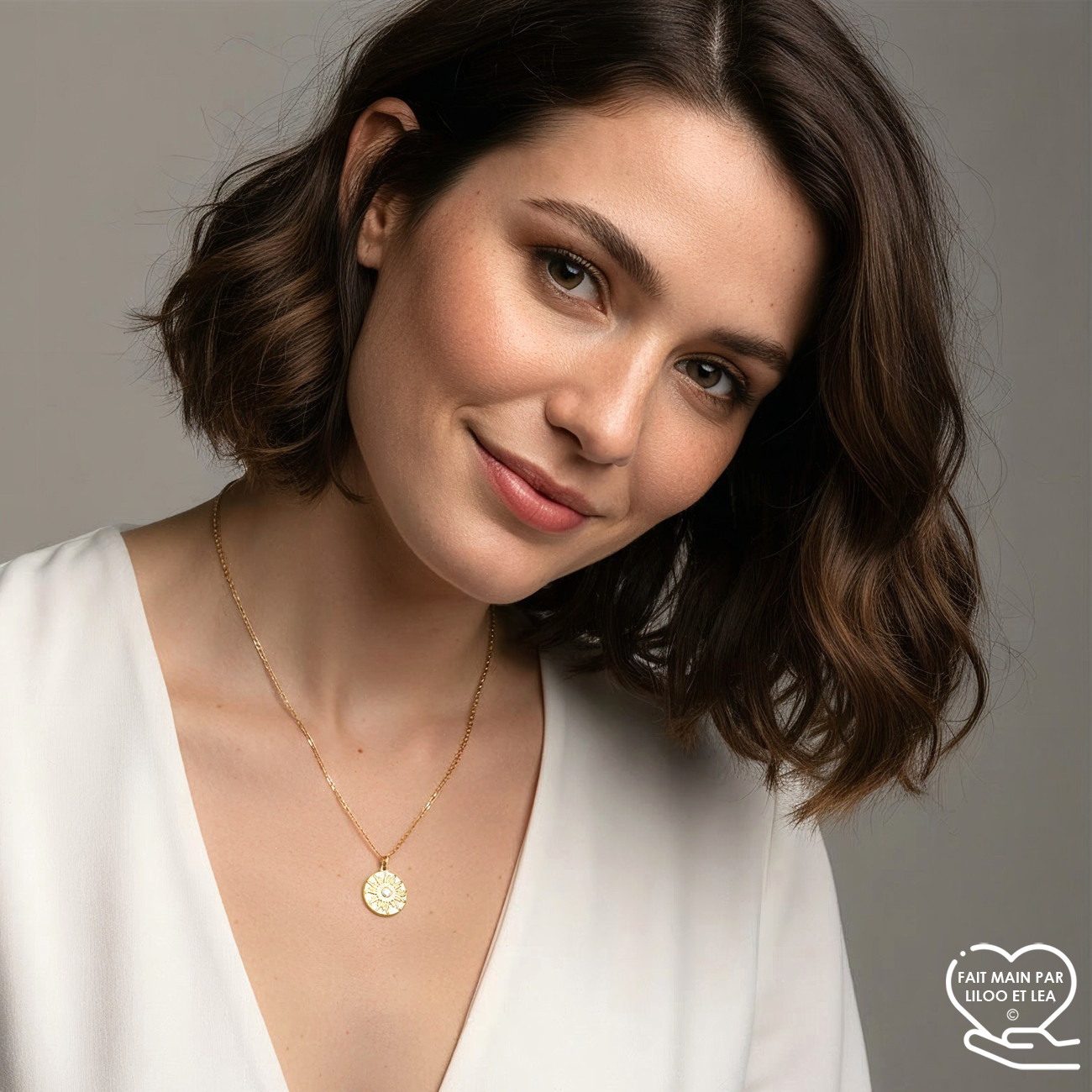 Sun and Swarovski crystal pendant necklace on silver or gold stainless steel*chain.