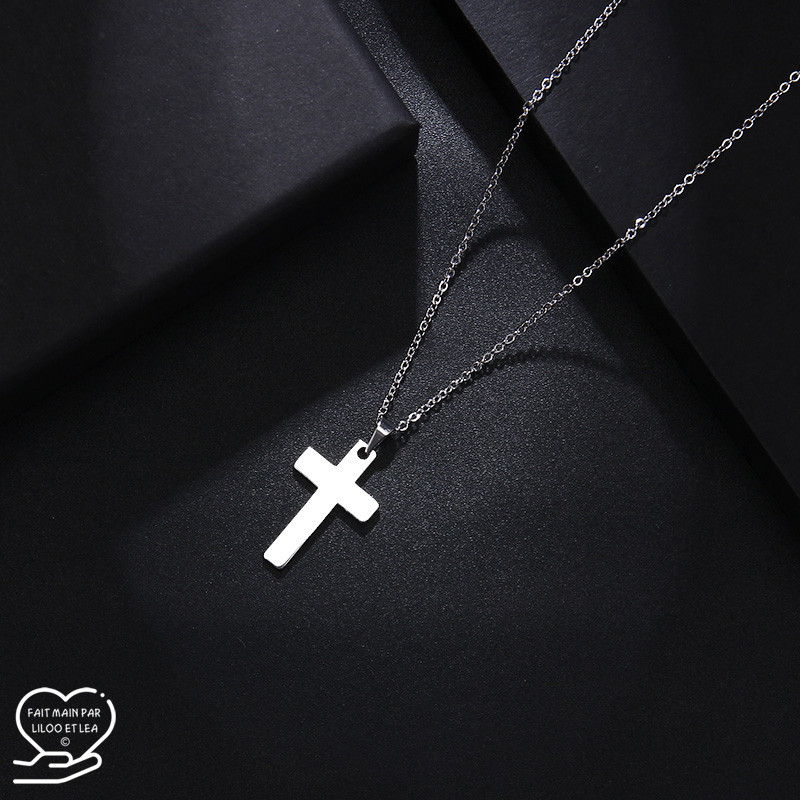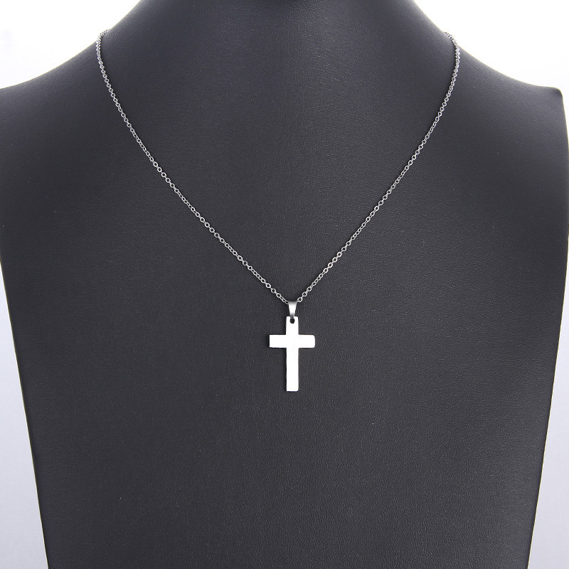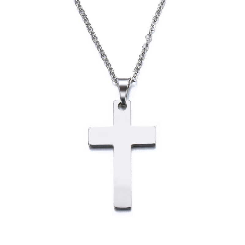 Smooth and shiny Christian cross pendant necklace in silver stainless steel.