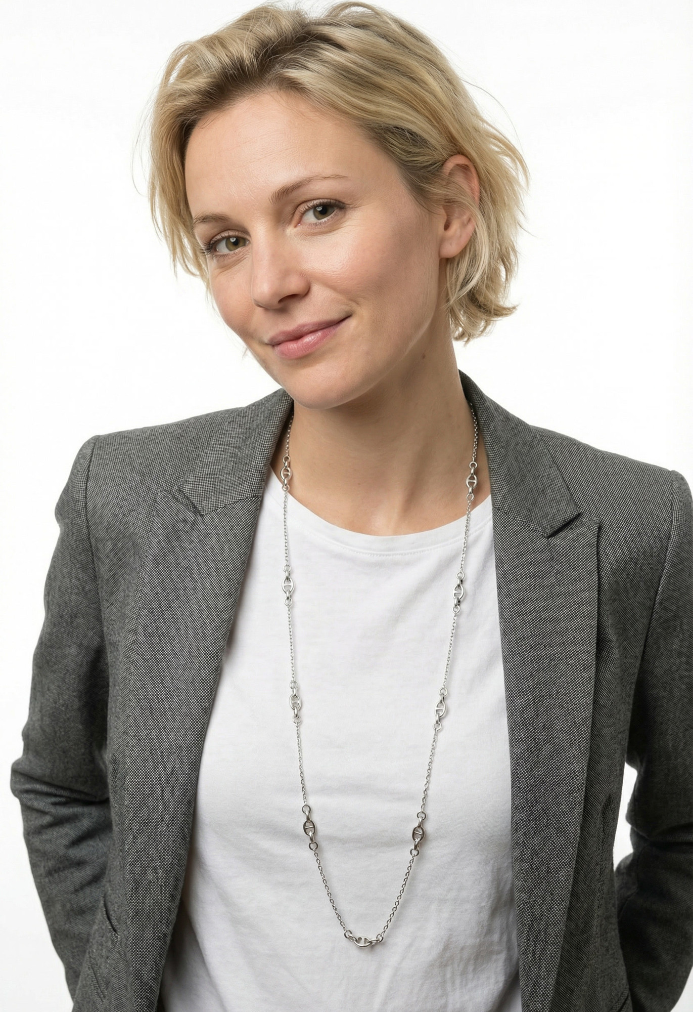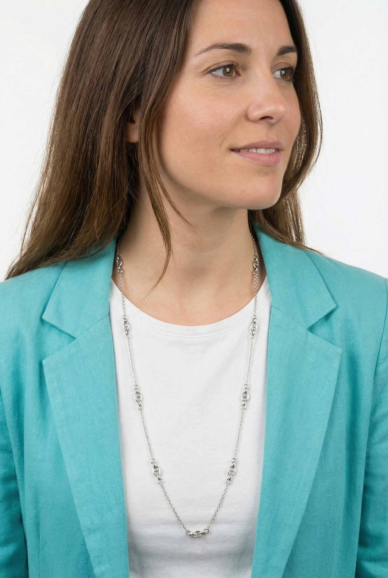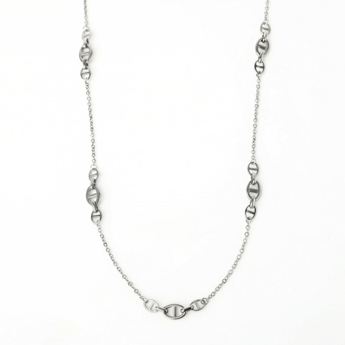 Nautical link long chain necklace in silver stainless steel six lengths woman gift