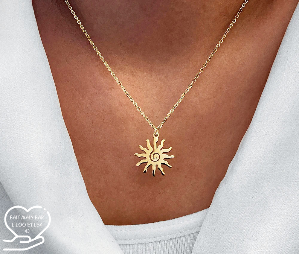 Collier pendentif soleil sur chaîne fine en acier inoxydable*.