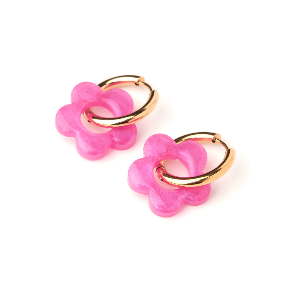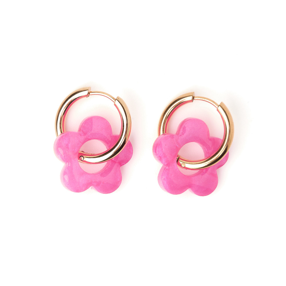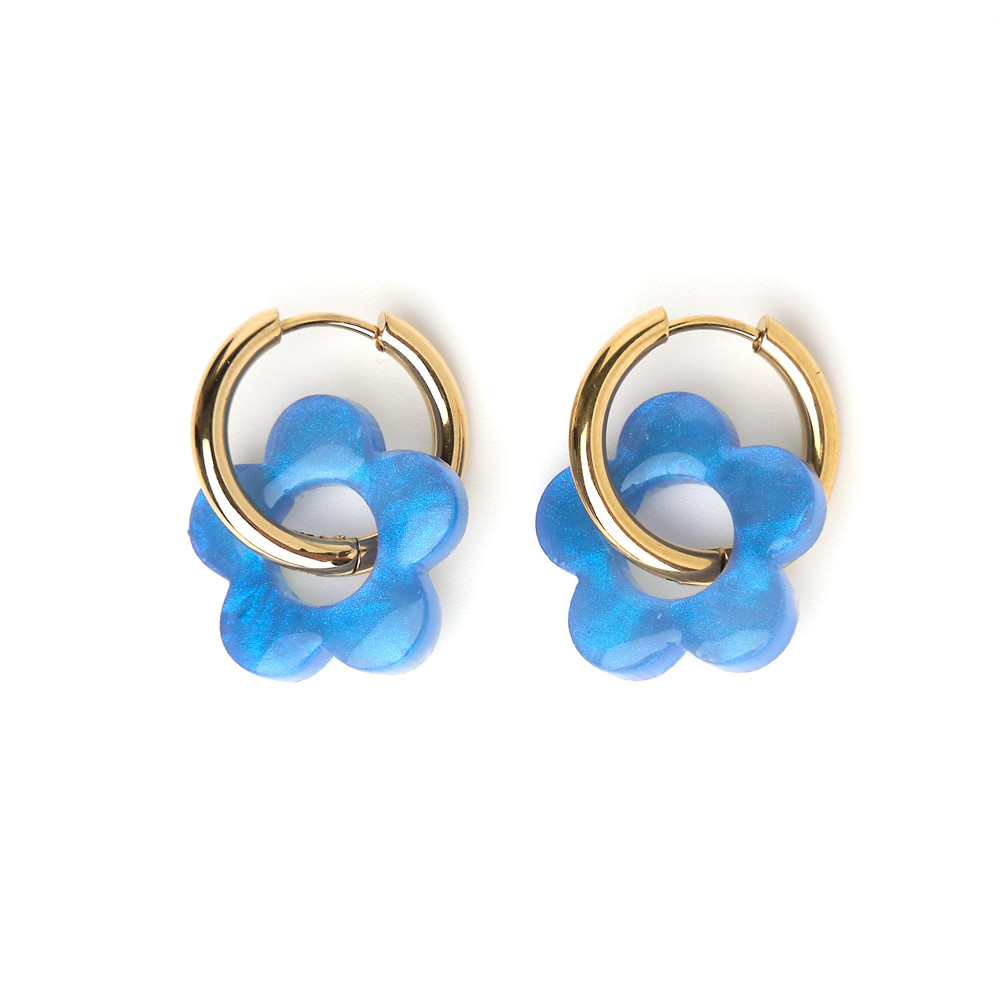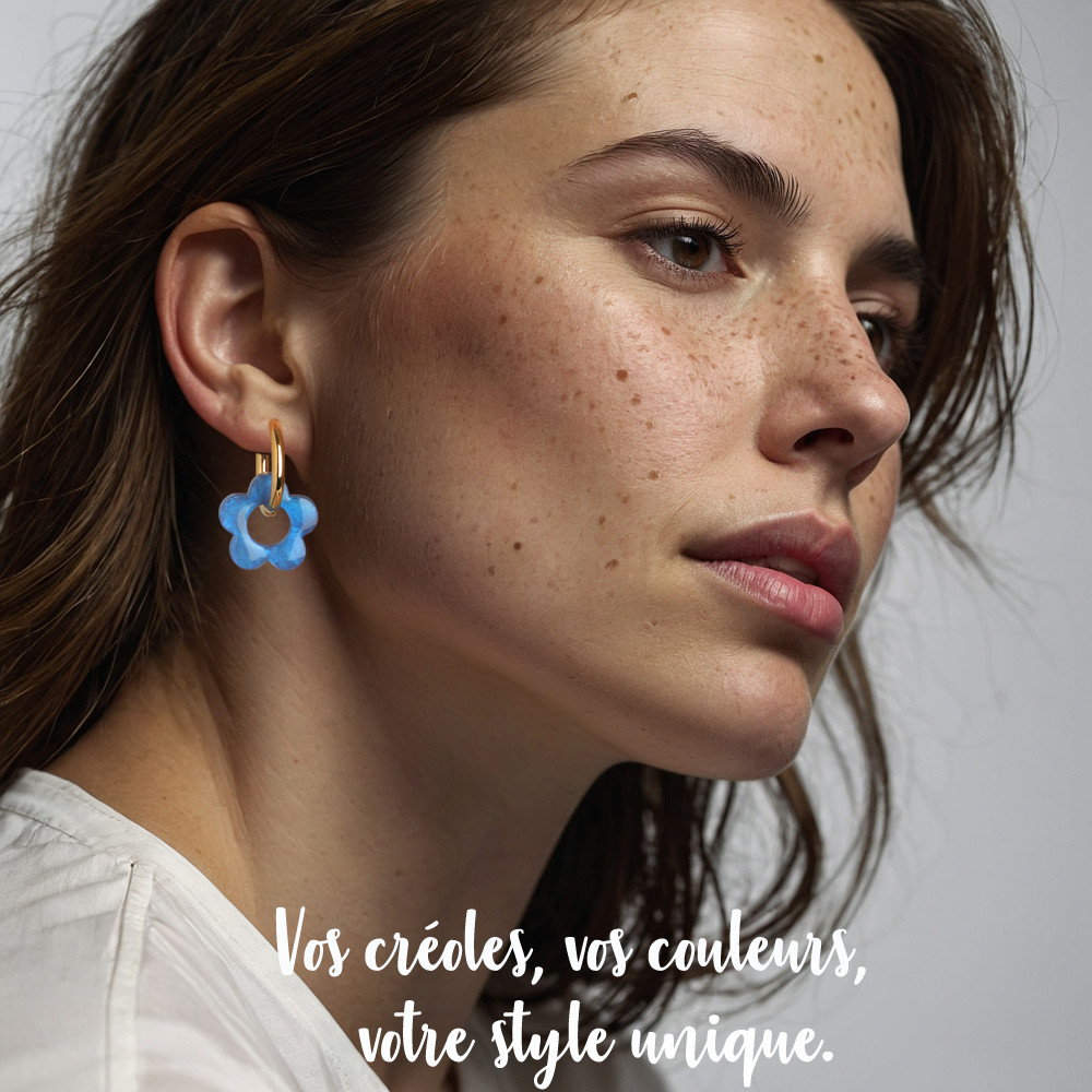 Boucles d'oreilles créoles en acier inoxydable (316L) argent ou or à composer soi-même avec des fleurs en résine.