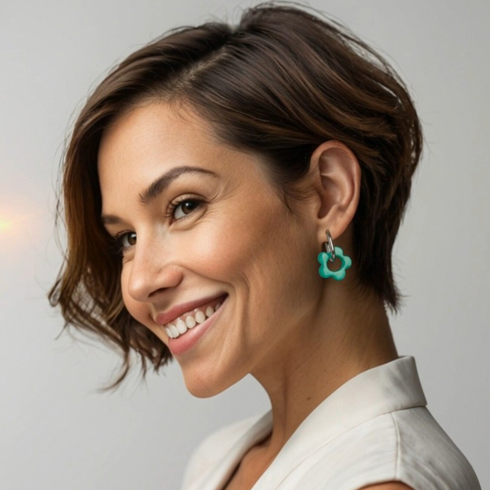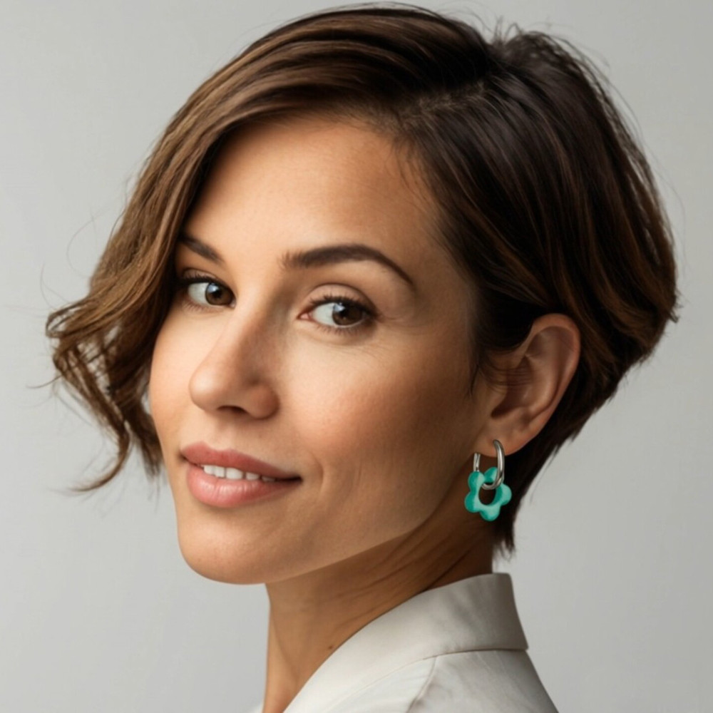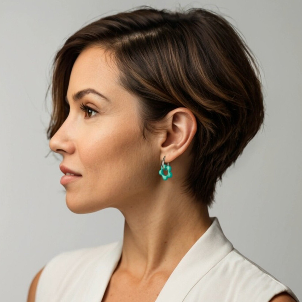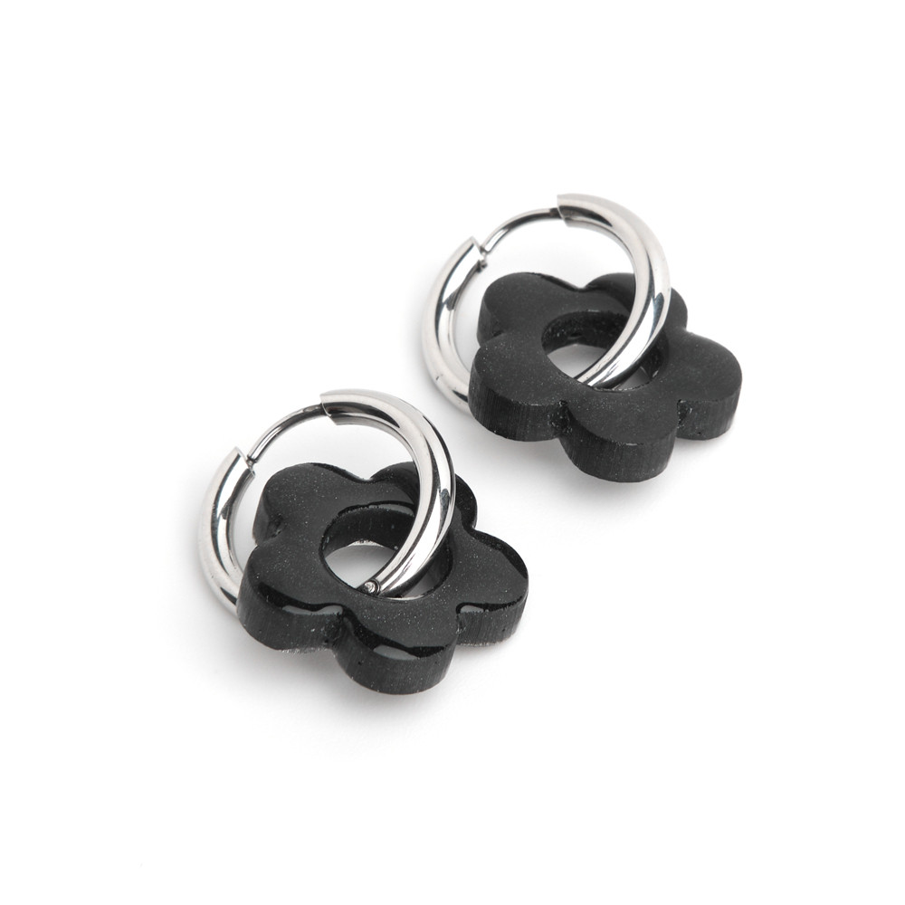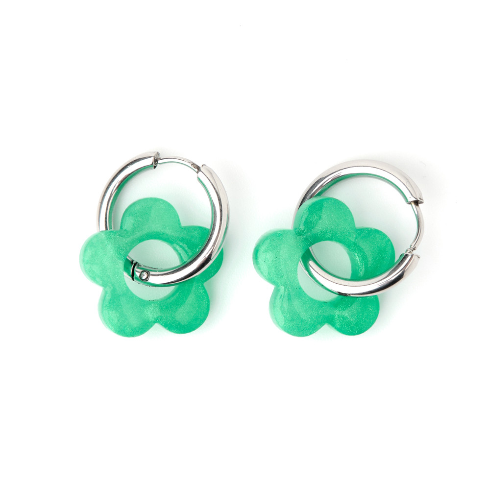 Boucles d'oreilles créoles en acier inoxydable (316L) argent ou or à composer soi-même avec des fleurs en résine.