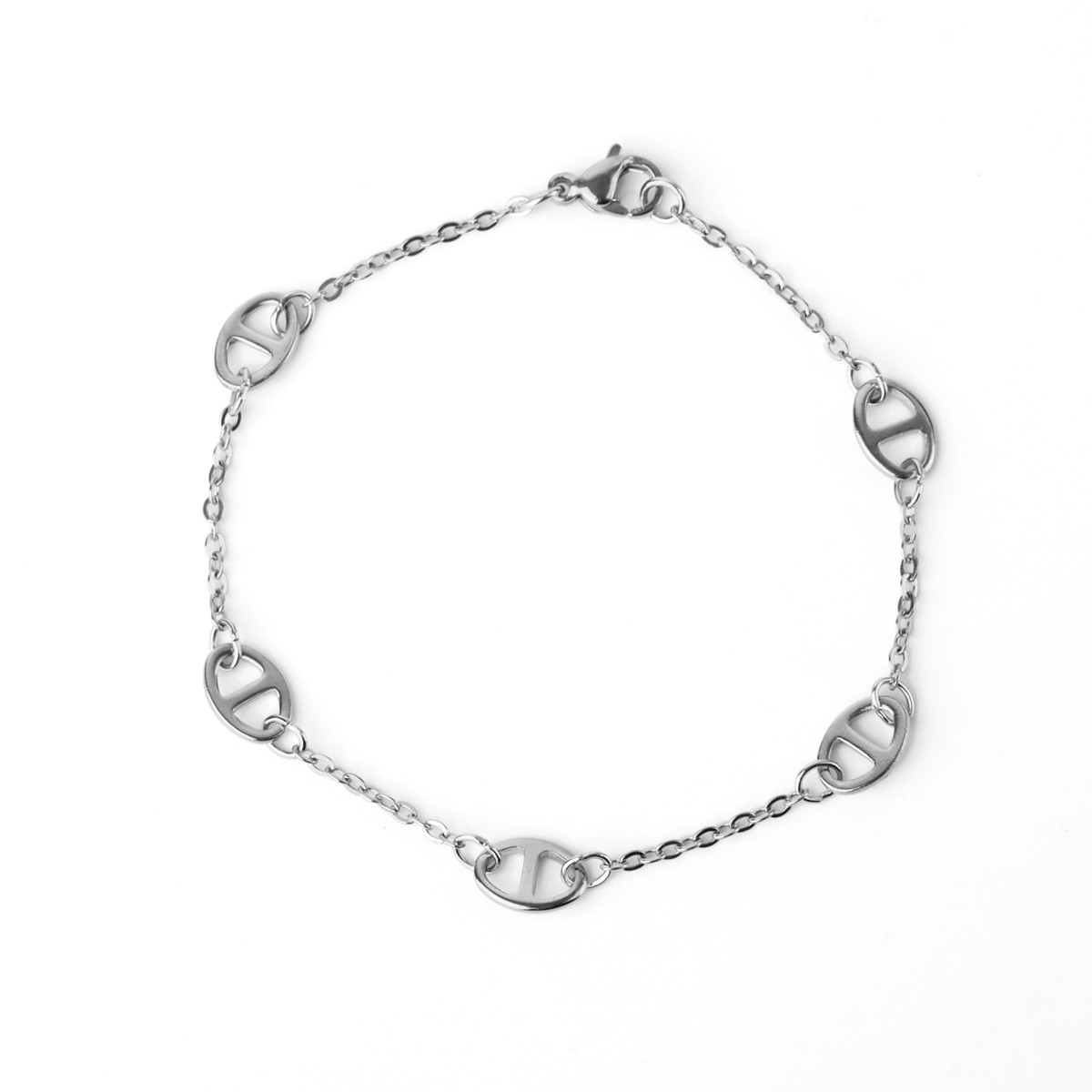 Bracelet maille marine en acier inoxydable argent. Disponible ici en finition or.